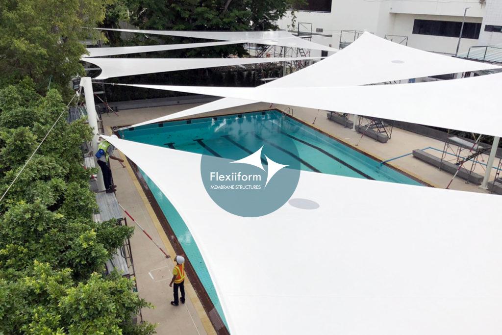 - Structural safety: The roofing system must be calculated to withstand high wind loads in open space areas. The location and foundation structure must be carefully designed so as not to affect the structural system and underground pipes of the swimming pool.
