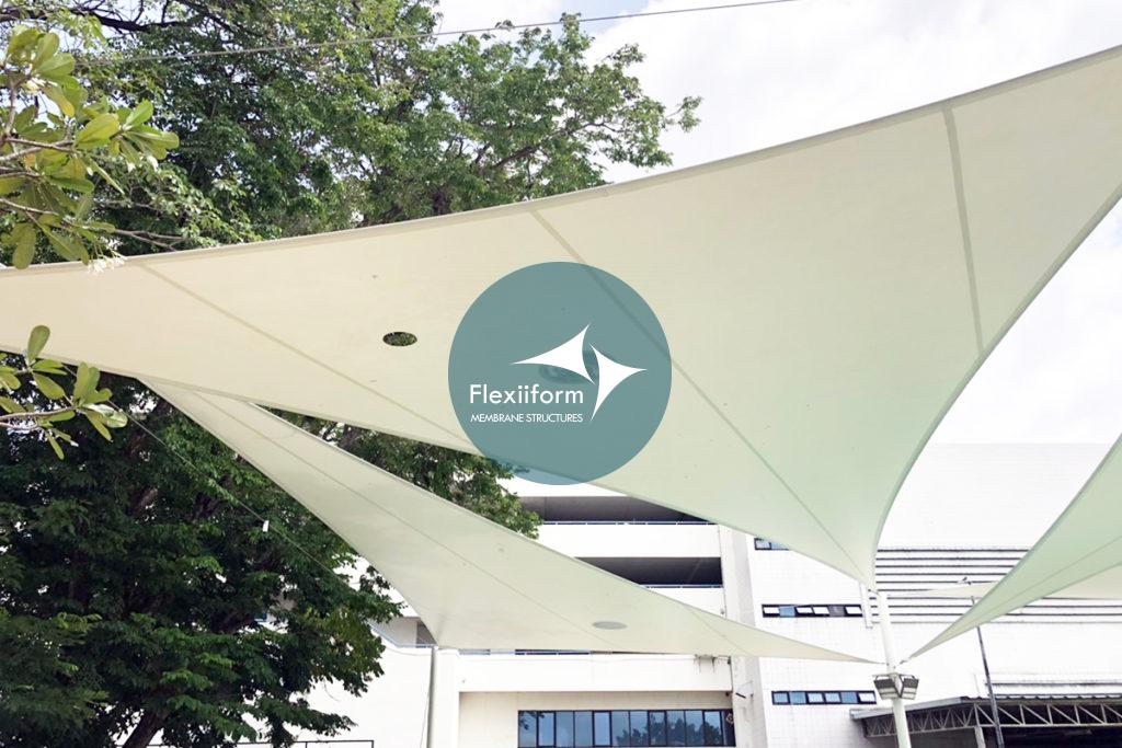 The technical solution is a complex of individual hyperbolic paraboloid (hypar) triangular tensile membrane structures, arranged in layers at different heights. This design creates a multi-layered, dynamic visual effect, while allowing for flexible coverage of a large area. Each “sail” is supported by a system of inclined steel columns, calculated to optimize load-bearing capacity and shape.