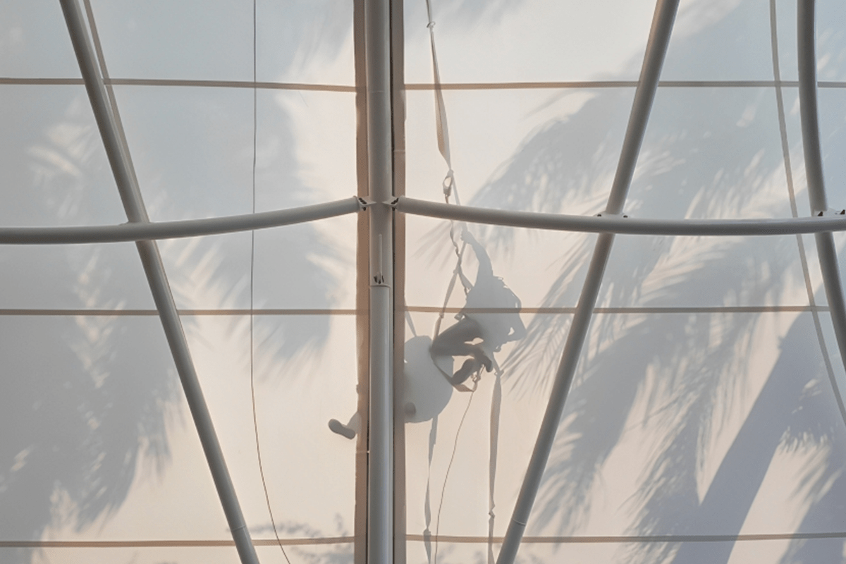 - ไม่บิดงอหรือโยกเยก: สามารถใช้งานได้ทั้งในร่มและกลางแจ้งในบริเวณที่มีฝนตกหนัก ลมแรง หรือแดดจัด เนื่องจากโครงสร้างผ้าใบที่รับแรงดึงได้รับการคำนวณให้มีแรงดึงที่แม่นยำ โดยอิงจากส่วนประกอบดัชนีวัสดุและสภาพอากาศในสถานที่ติดตั้ง จึงสามารถทนต่อสภาพอากาศที่เลวร้ายได้อย่างสมบูรณ์