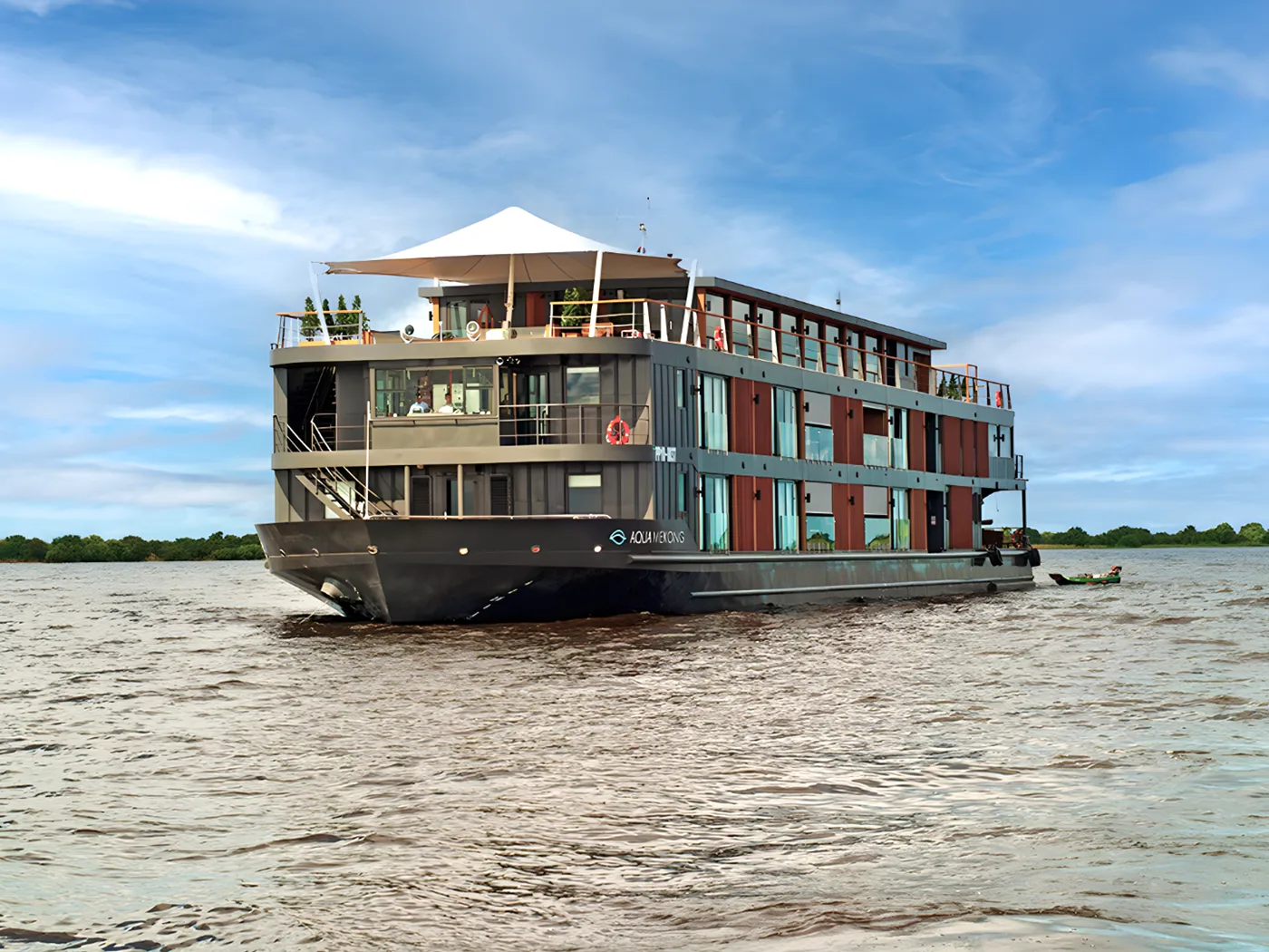 - Aqua Mekong (Việt Nam – Campuchia): Sử dụng mái che bạt căng du thuyền tại lounge ngoài trời và hồ bơi, tạo không gian sang trọng và gần gũi thiên nhiên. [Aqua Mekong Cruise]