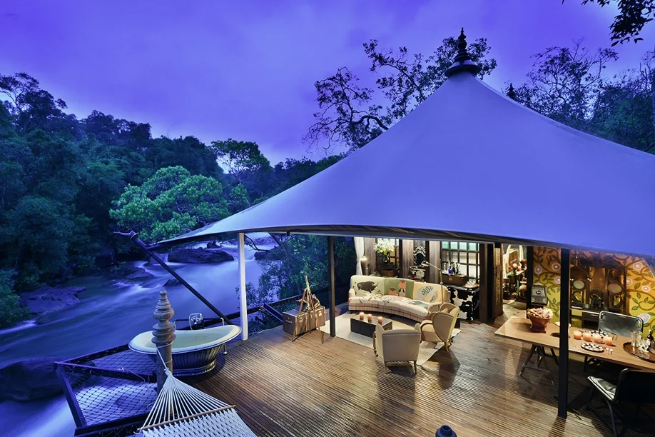 Các cấu trúc mái che bạt căng villa bể bơi là sự cô đọng của thiết kế với các đường nét quyến rũ, gợi lên hình ảnh mát mẻ của những bãi biển dài, mang lại cảm giác về mùa hè và sự tự do. Mặc dù có vẻ ngoài tao nhã nhẹ nhàng, những cánh buồm thực chất là những cấu trúc chịu lực lớn, có thể sử dụng cho bất kỳ việc lắp đặt cố định hoặc sự kiện tạm thời nào. Kết cấu chịu lực của cánh buồm bao gồm các trụ đỡ bằng sắt mạ kẽm, đảm bảo sự vững chắc. Vật liệu cánh buồm thực tế được làm bằng bạt PVDF hoặc HDPE kéo căng, có khả năng tạo hình phù hợp với bất kỳ không gian nào.